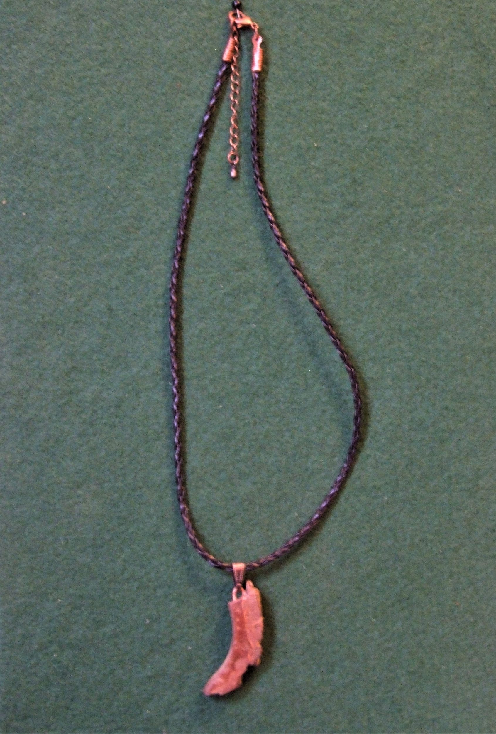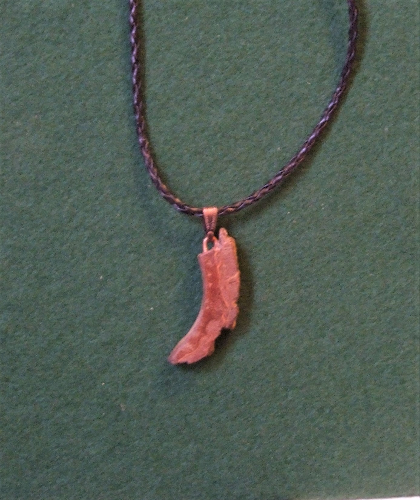 This Wooden Pendent is hand crafted by Barnaby from Redwood Bark and comes with an 18″ inch platted faux leather cord, antique bronze coloured fittings and a Lobster Clasp.
